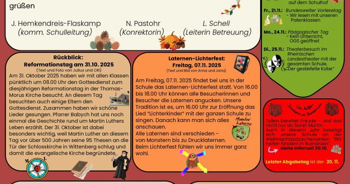 heute erhalten alle Familien die November-Ausgabe unseres Schul-Newsletters.